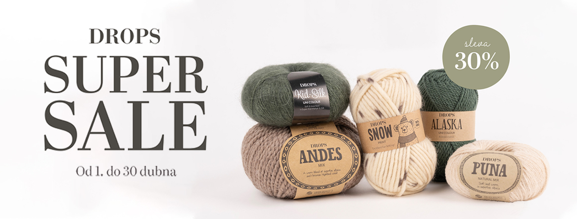 SLEVA 30% na příze DROPS Alaska, DROPS Andes, DROPS Kid-Silk, DROPS Puna a DROPS Snow.