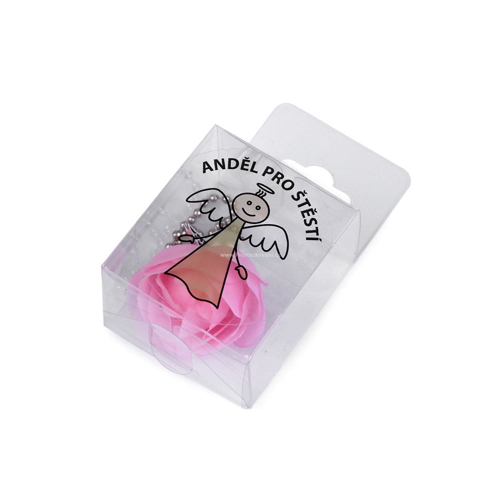 Dodávaný v plastové průhledné krabičce s nápisem "ANDĚL PRO ŠTĚSTÍ".