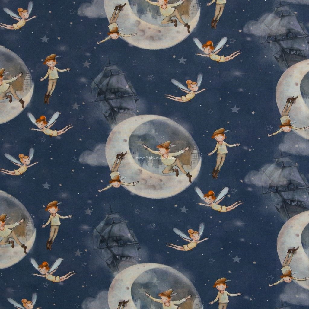 Tato kouzelná bavlněná látka z kolekce Fairy Tale přináší do světa šití oblíbené pohádkové postavy v hravém a stylovém provedení. Konkrétní vzor s motivem Petra Pana na džínově modrém podkladu okouzlí malé i velké snílky – jemné ilustrace známých scén dodávají látce jedinečný a nadčasový vzhled.