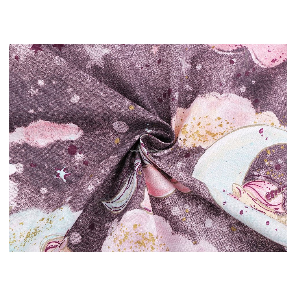 Bavlněná látka jednorožci na obláčcích v šedofialové 0,4 m