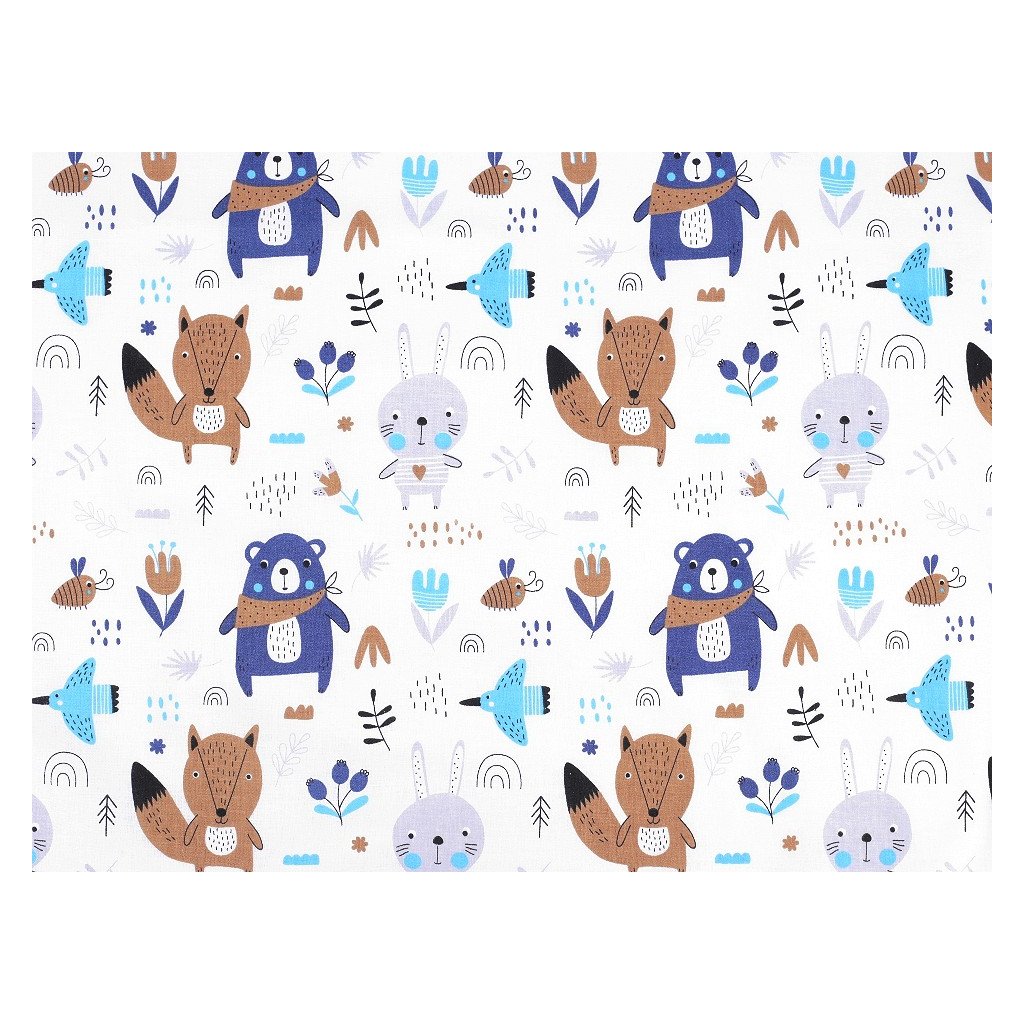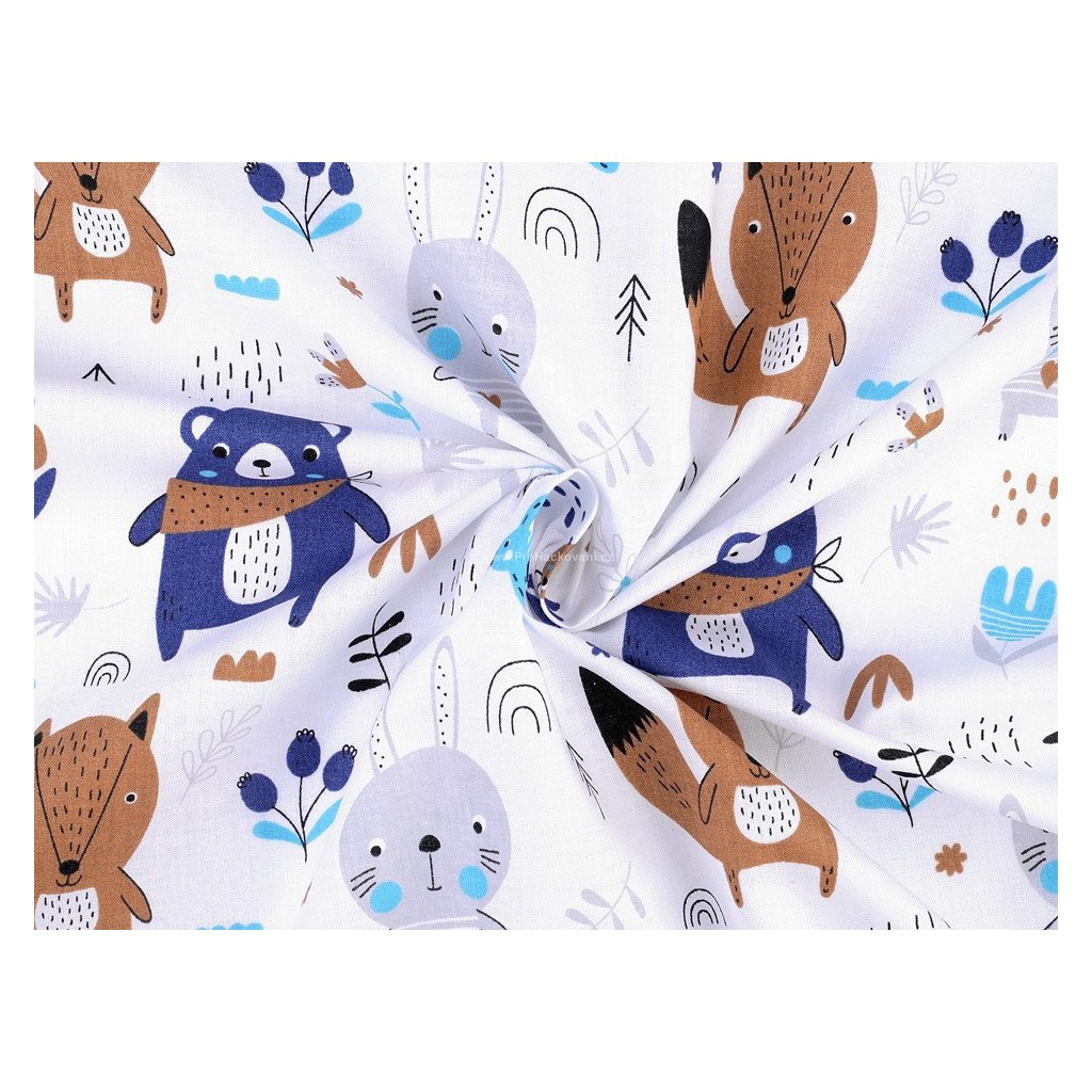 Bavlněný flanel se zajíčky, medvídky, lištičkami v modré s hnědou