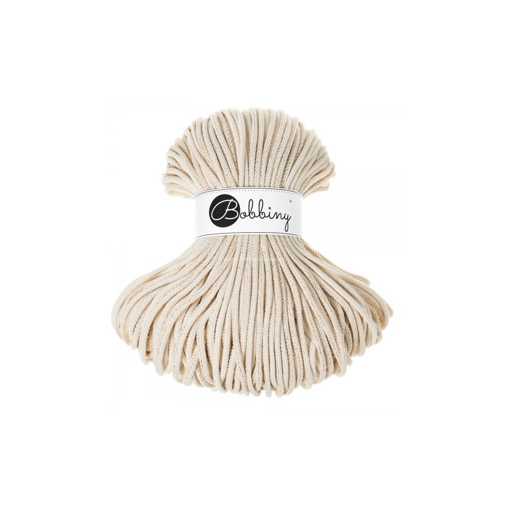 Bobbiny šňůry Premium jsou silnější provázkové příze z bavlněných vláken. Jsou velmi kvalitní, odolné. Jsou vhodné k háčkování a pletení bytových a módních doplňků jako jsou např.: košíky, puffy, koberečky, podsedáky, macramé květináče, kabelky, tašky.