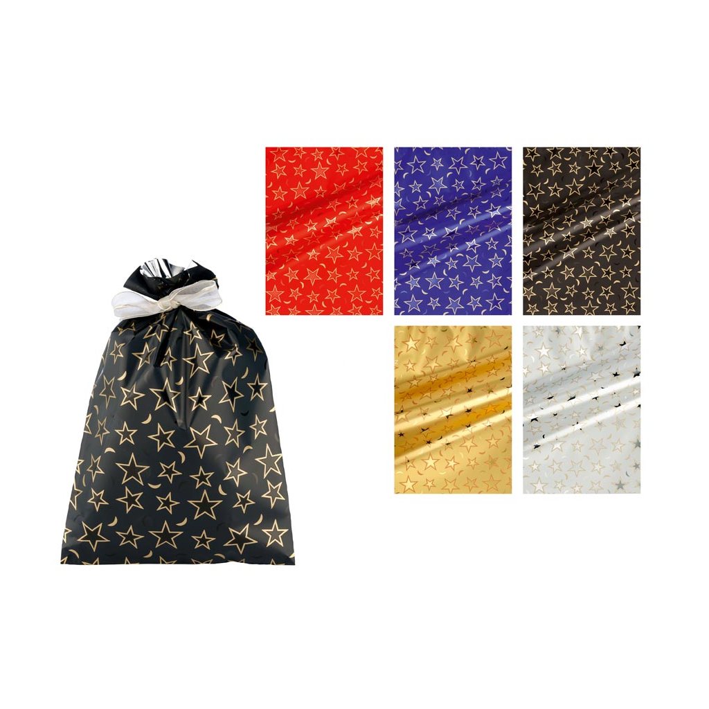 Tento dárkový sáček z lesklého materiálu s jemným motivem zlatých hvězd dodá vašim dárkům slavnostní vzhled. Ideální pro rychlé a stylové balení bez nutnosti použití balicího papíru. Sáček snadno uzavřete pomocí vázací stuhy, která zároveň poslouží jako dekorativní prvek. Praktické, úsporné a krásné řešení pro vaše vánoční překvapení.
