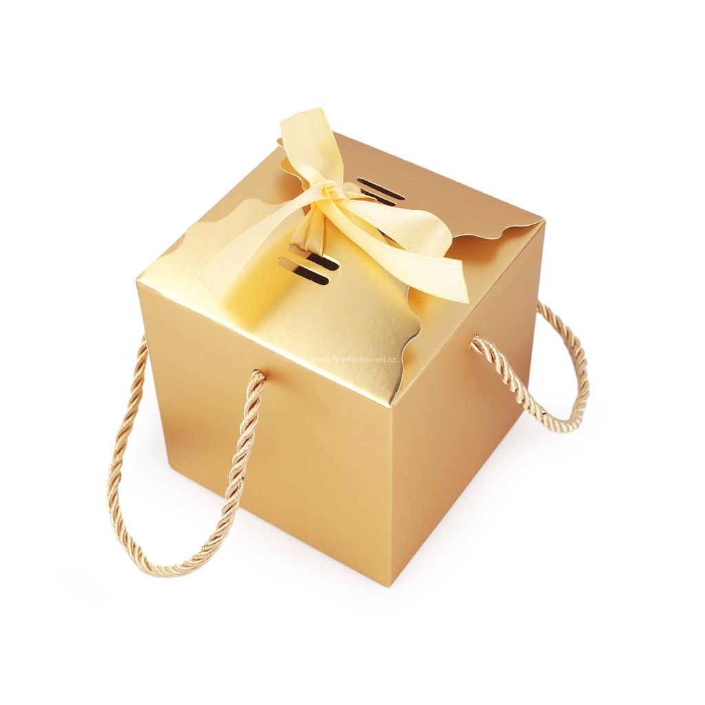 Dárková krabička se stuhou čtverec 10 cm zlatá