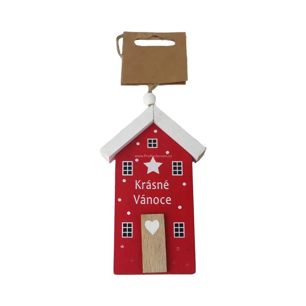 Dekorace domeček k zavěšení červený 7,5 x 1,5 x 12 cm