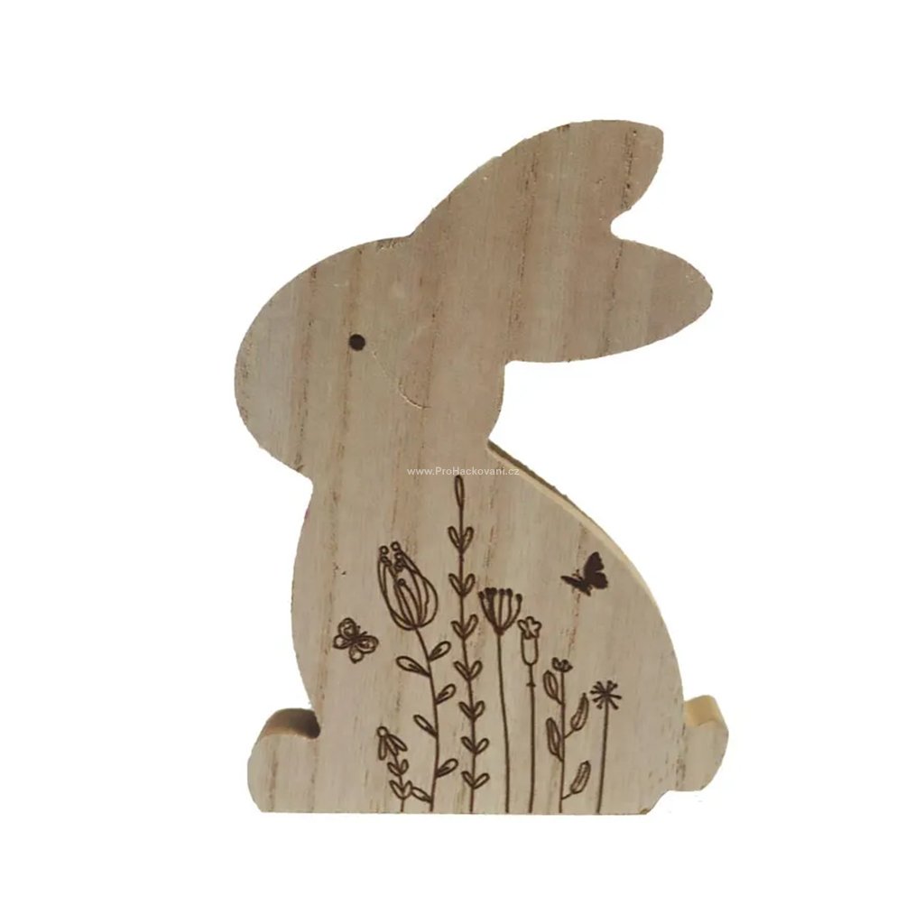 - Přírodní materiál: Králíček je vyroben ze světlého masivního dřeva s výraznou přírodní texturou, která dodává každému kusu jedinečný vzhled.