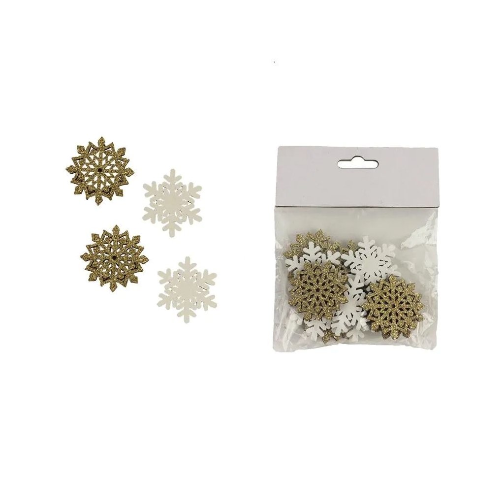 Sada dvanácti vloček k nalepení je skvělým doplňkem pro zimní i vánoční tvoření. V balení najdete šest bílých a šest zlatých vloček, přičemž zlaté jsou navíc pokryté jemnými třpytkami. Zadní strana je opatřena samolepicím kolečkem, díky kterému dekoraci snadno připevníte na papír, dřevo, plast i další povrchy bez potřeby lepidla. Hodí se k dozdobení přáníček, dárkových balení, vánočních dekorací, věnců nebo svátečních aranžmá.