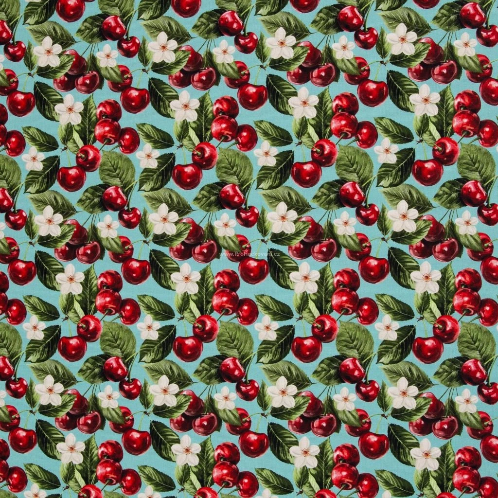 Stylová dekorační látka Matteo zaujme motivem třešní na mintovém podkladu. Design působí hravě a svěže, ideálně se hodí do moderních i přírodně laděných interiérů, dětských pokojů či kreativních projektů.