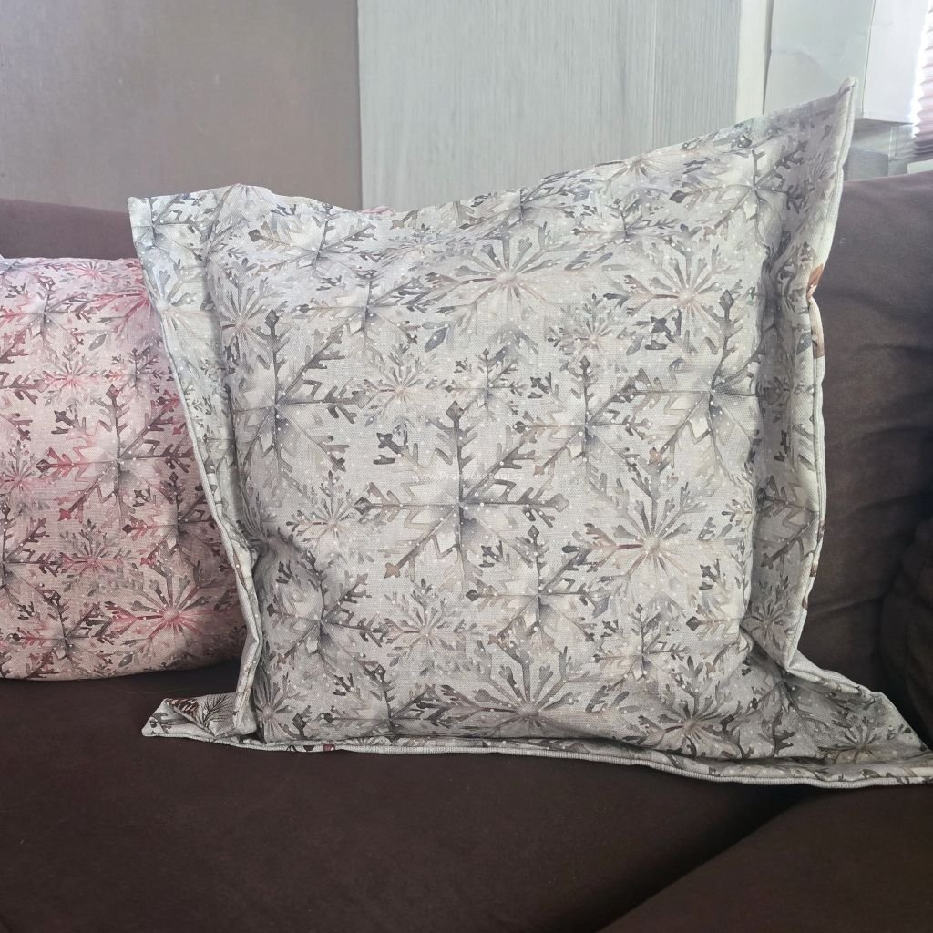 Motiv sněhových vloček v kombinaci s jemně melírovaným podkladem ve studených přírodních tónech působí jemně a vkusně, skvěle se hodí do moderních i tradičně laděných interiérů.