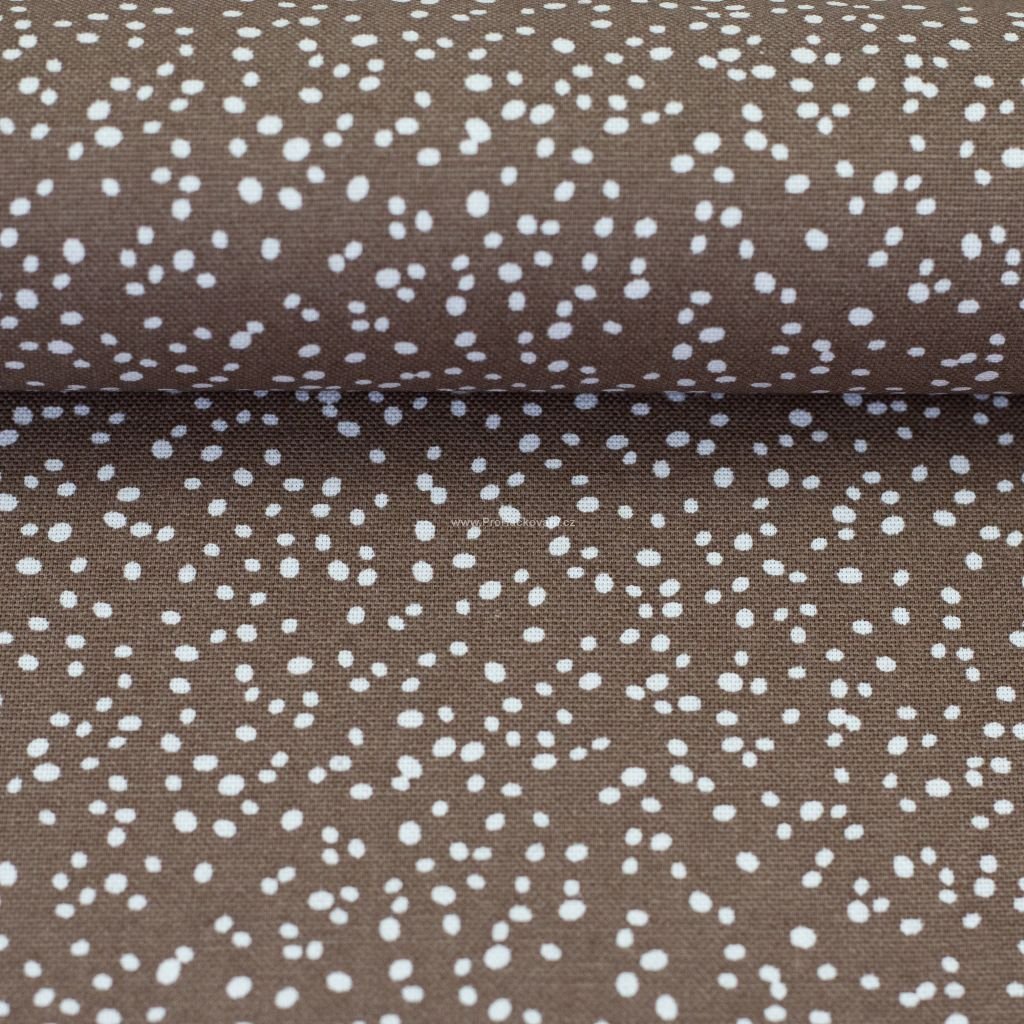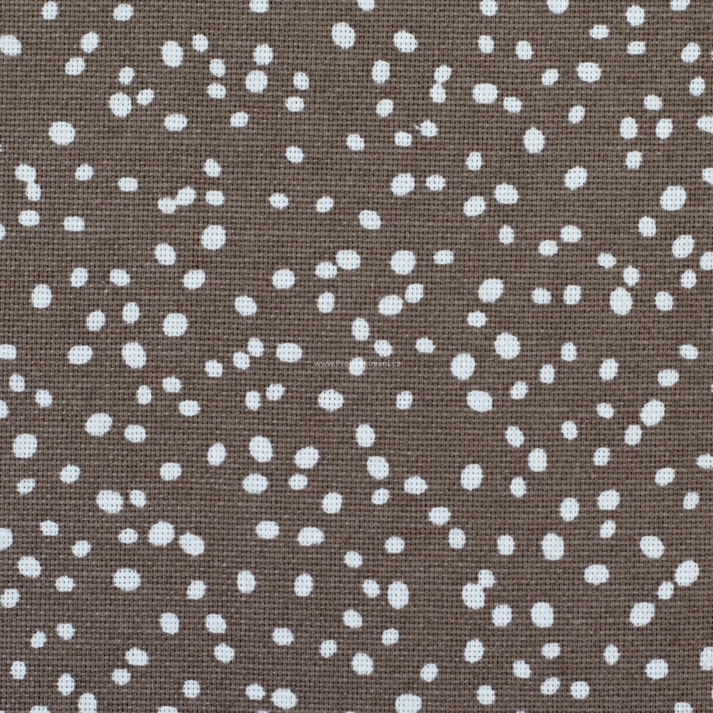 Motiv puntíků v kombinaci s hnědým podkladem působí jemně a vkusně, skvěle se hodí do moderních i tradičně laděných interiérů.