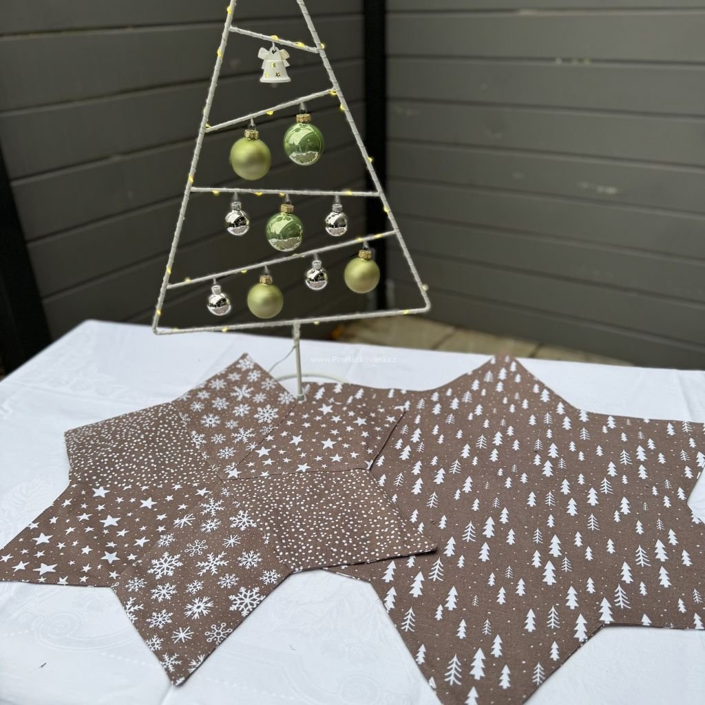 Dekorační vánoční bavlněná látka bílá s hvězdičkami