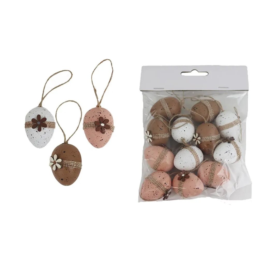 Dekorační vajíčka k zavěšení s kytičkou 12 ks