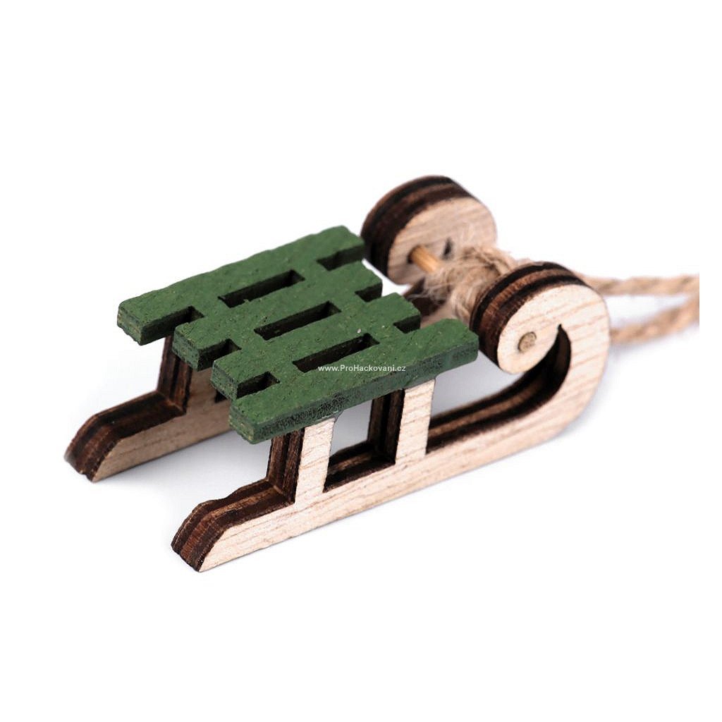 Dřevěná dekorace sáňky zelené v. 29