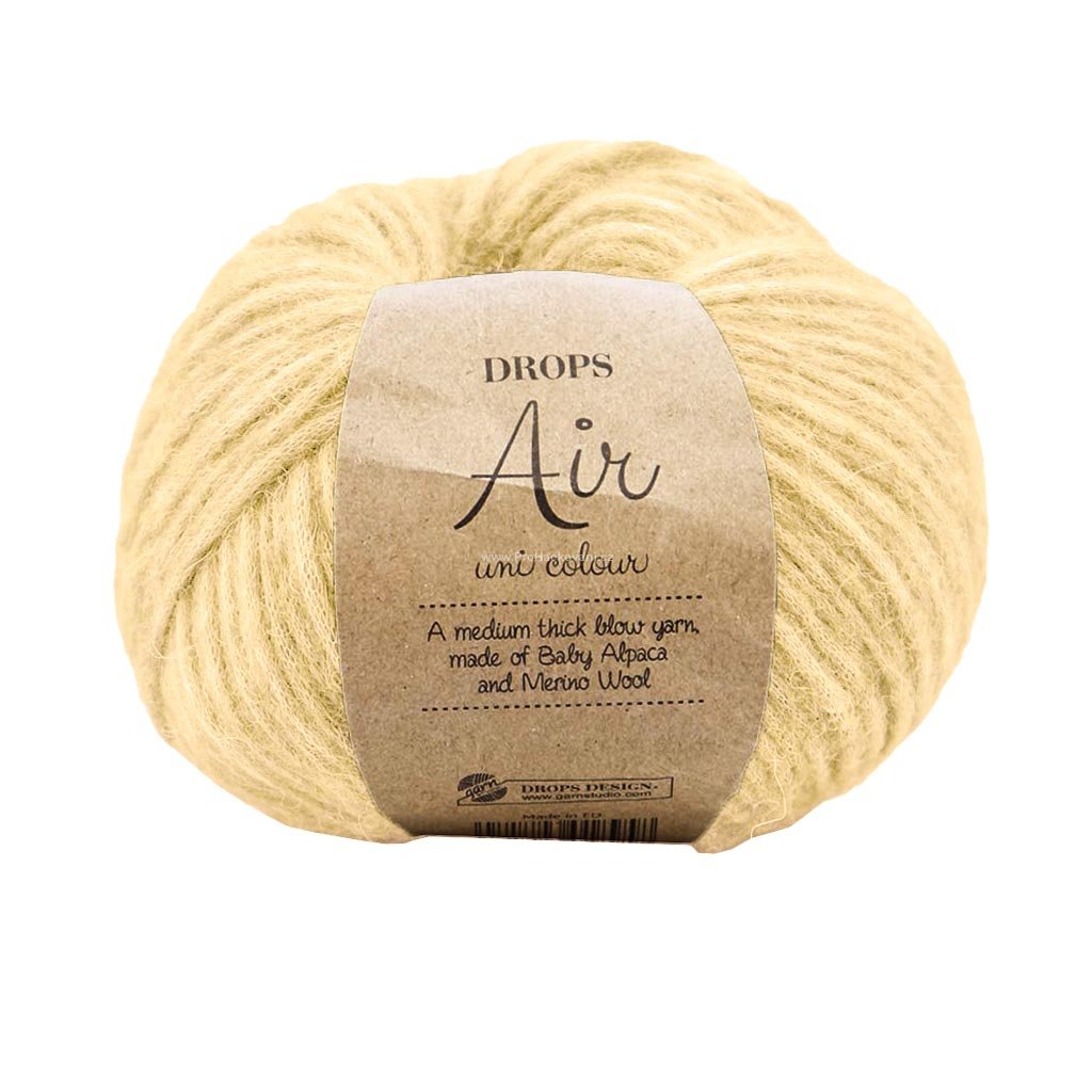 Drops Air je silná vzdušná příze ve složení jemná Baby Alpaka, Merino vlna a polyamid. Jedinečnost této příze je dána zpracováním, kdy jednotlivá vlákna nejsou tradičně skána, ale jsou vzduchem stlačena do dutinky. Díky tomu je výsledný úplet o 30 - 35 % lehčí než úplety z jiných, podobně silných přízí. Krásně vyniknou i plastické vzory.