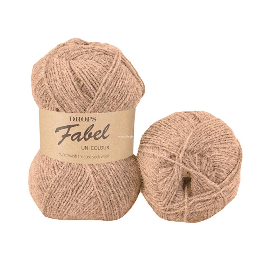 DROPS Fabel je 4vláknová příze spřádána z jemné vlny ošetřené úpravou superwash. Díky tomu lze výrobky z ní snadno udržovat a můžete je prát v pračce. Výsledné vlákno je krásně kulaté a tak příjemné, že přízi lze použít mnohem všestranněji než jen k pletení ponožek. Vyzkoušejte ji při pletení některého z modelů pro miminka či malé děti!