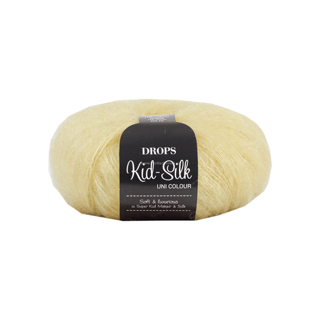 Příze Drops Kid-Silk je směsí 75 % kid mohéru a 25 % morušového hedvábí. Jedná se o luxusní, vzdušnou a velmi jemnou přízi s vlasem, kterou doporučujeme na lehké úplety jako jsou krajkové šály, plédy, pelerínky, bolerka či něžné svetříky i šaty. Používá se samostatně nebo se kombinuje s jinými přízemi.