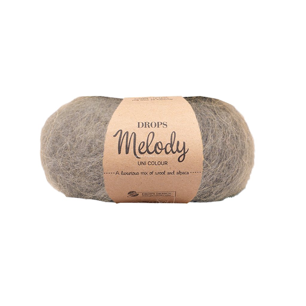 Příze Drops Melody je mimořádně měkká a lehoučká, a proto se hodí na objemné úplety stejně dobře, jako na doplňky. Na silných jehlicích rychle přibývá na objemu, nikoli však na váze, proto je ideální i na svetry, ponča či větší šály. Přízi lze rovněž využít jako efektní příplet společně s jiným typem příze - úpletu dodá objem a zjemní ji.