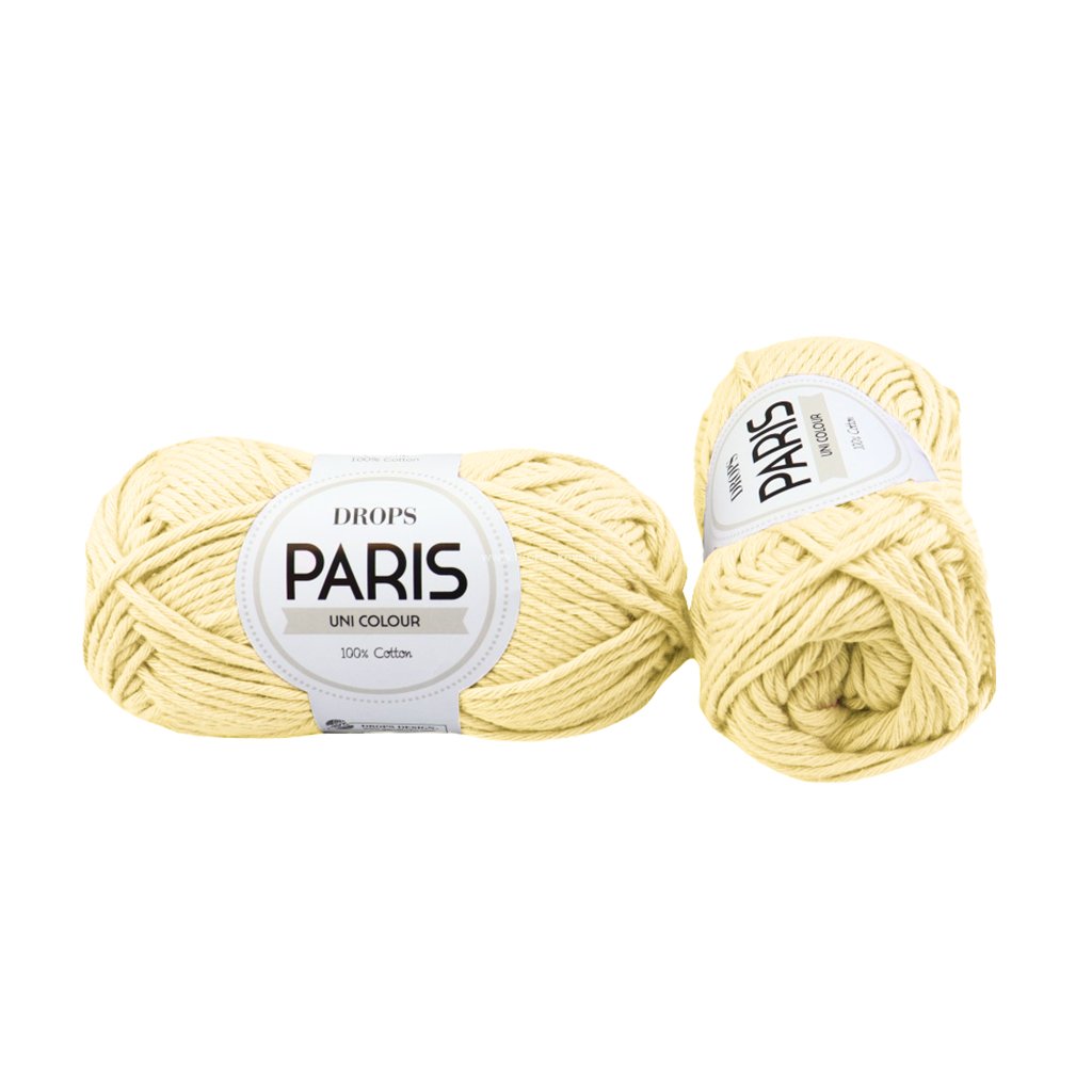Příze DROPS Paris je tvořena velkým množství tenkých vláken 100% bavlny. Je měkká, nedráždivá, vhodná i pro osoby s citlivou pokožkou, dobře se z ní plete i háčkuje. Výsledný úplet má jemný rustikální nádech.