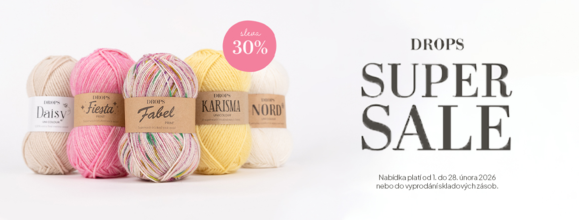AKCE na přízi DROPS Daisy, Fiesta, Fabel, KARISMA, NORD - sleva až -30%.