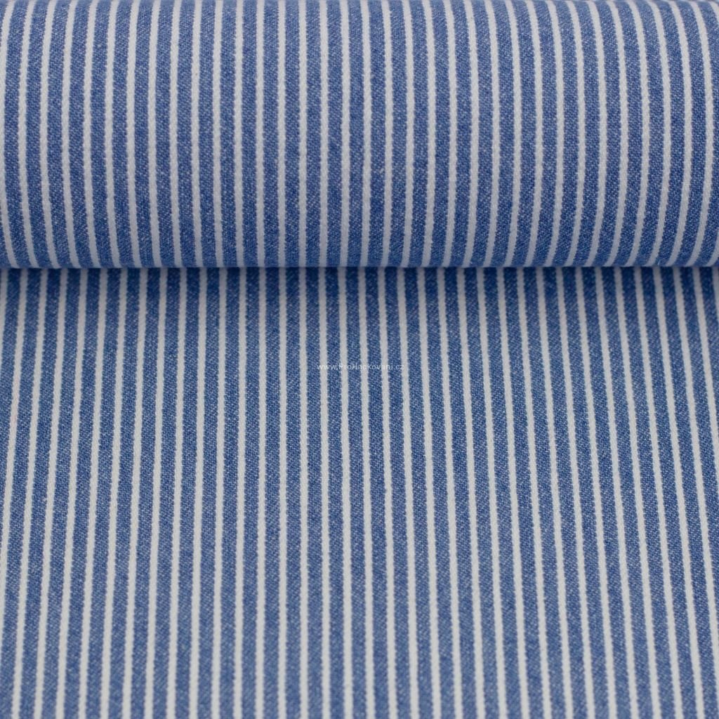Emden je kvalitní bavlněná džínová látka s přírodními bílými proužky o velikosti přibližně 1 mm na modrém podkladu. Tento vzor kombinuje tradiční styl s moderním vzhledem a přináší originální a nadčasový vzhled.