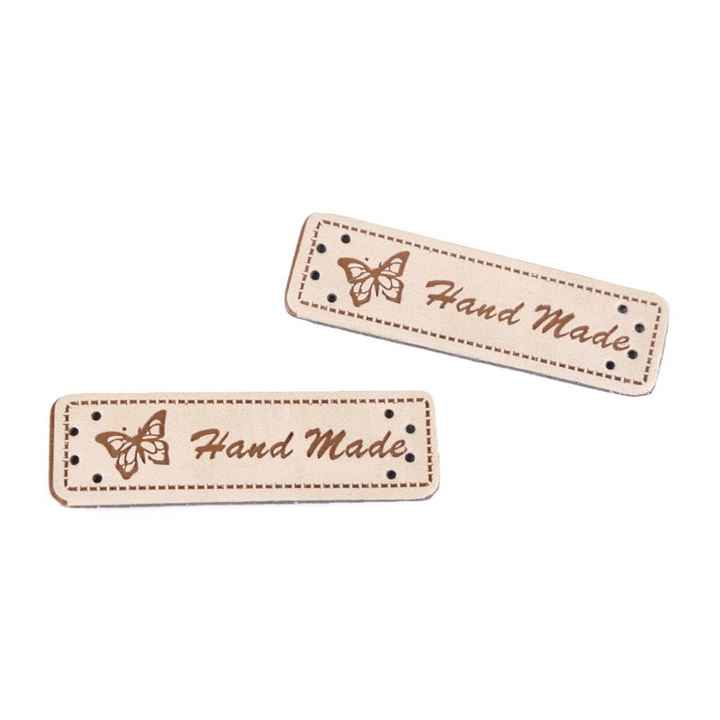 Oválná cedulka z eko kůže s nápisem „hand made“ je krásným a praktickým doplňkem pro všechny, kteří tvoří s láskou a chtějí své výrobky doladit do posledního detailu. Cedulka má jednostranný nápis a její vzhled dotváří dekorativní motýlek. Na obou stranách najdete také dírky pro snadné přišití nebo provlečení šňůrky, takže ji snadno upevníte na jakýkoliv projekt.