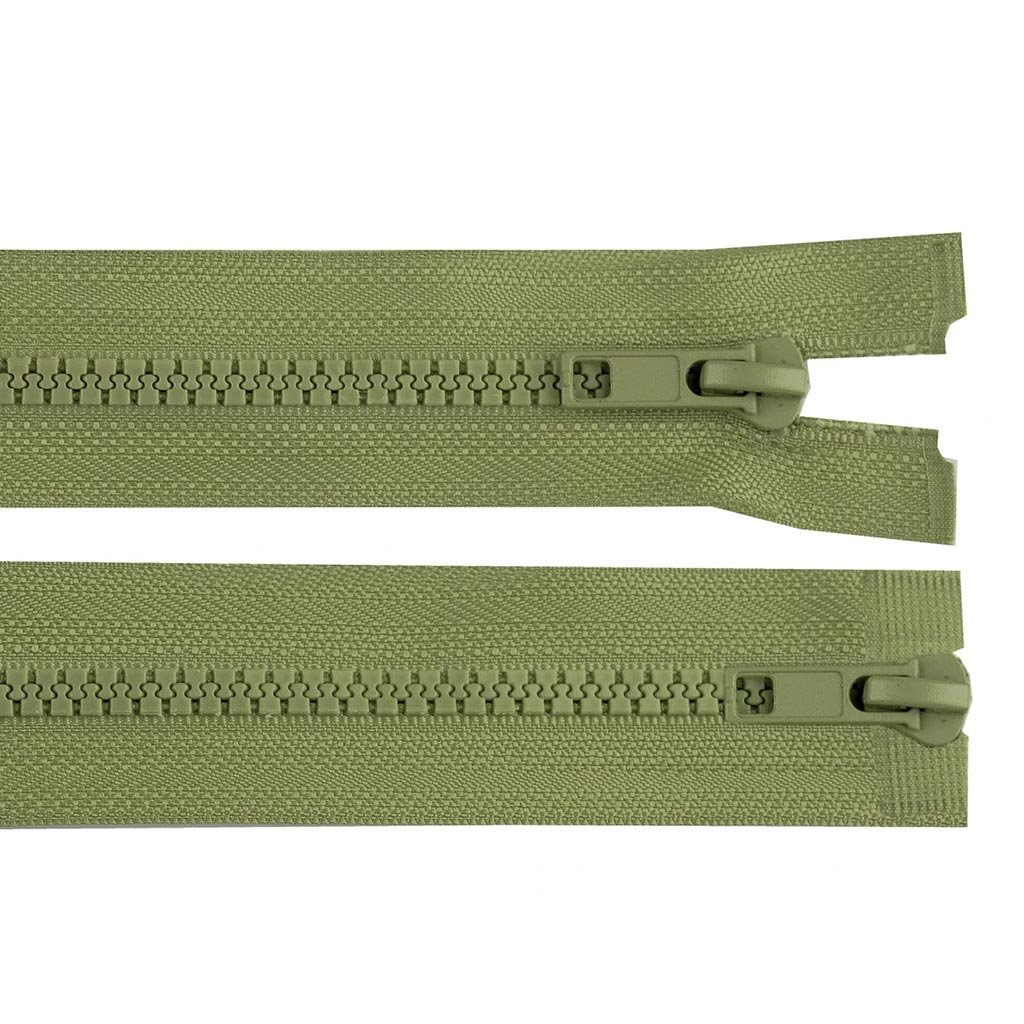 Kostěný zip No 5 délka 90 cm dvoucestný zelený khaki