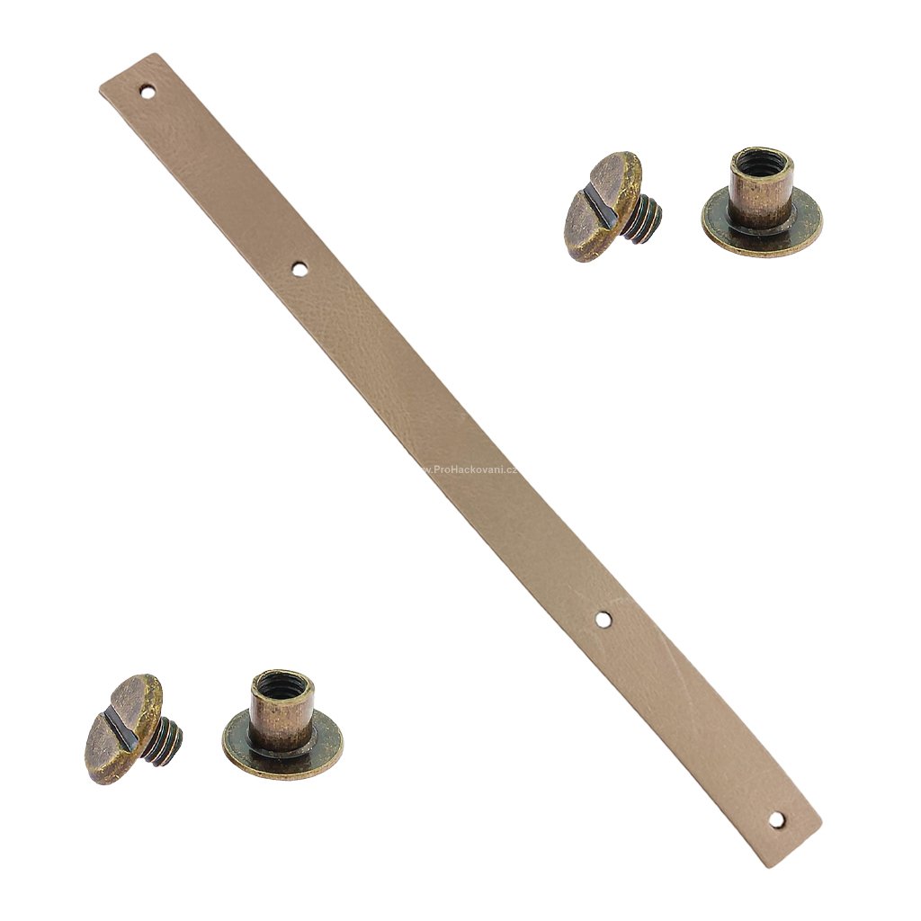Sada kožený popruh 22 cm š. 2 cm bílá káva s nýtkem staromosaz