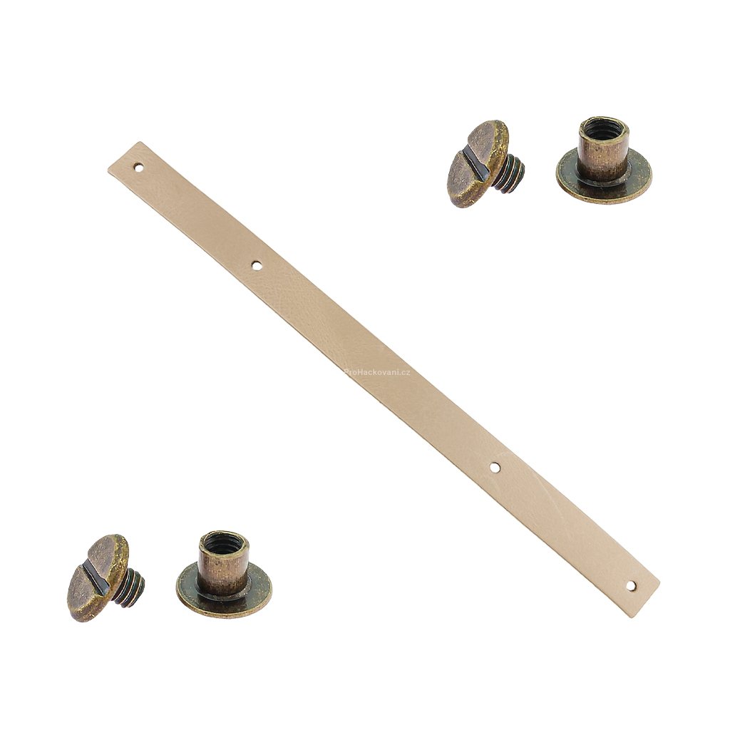 Sada kožený popruh 22 cm š. 2 cm krémový s nýtkem staromosaz