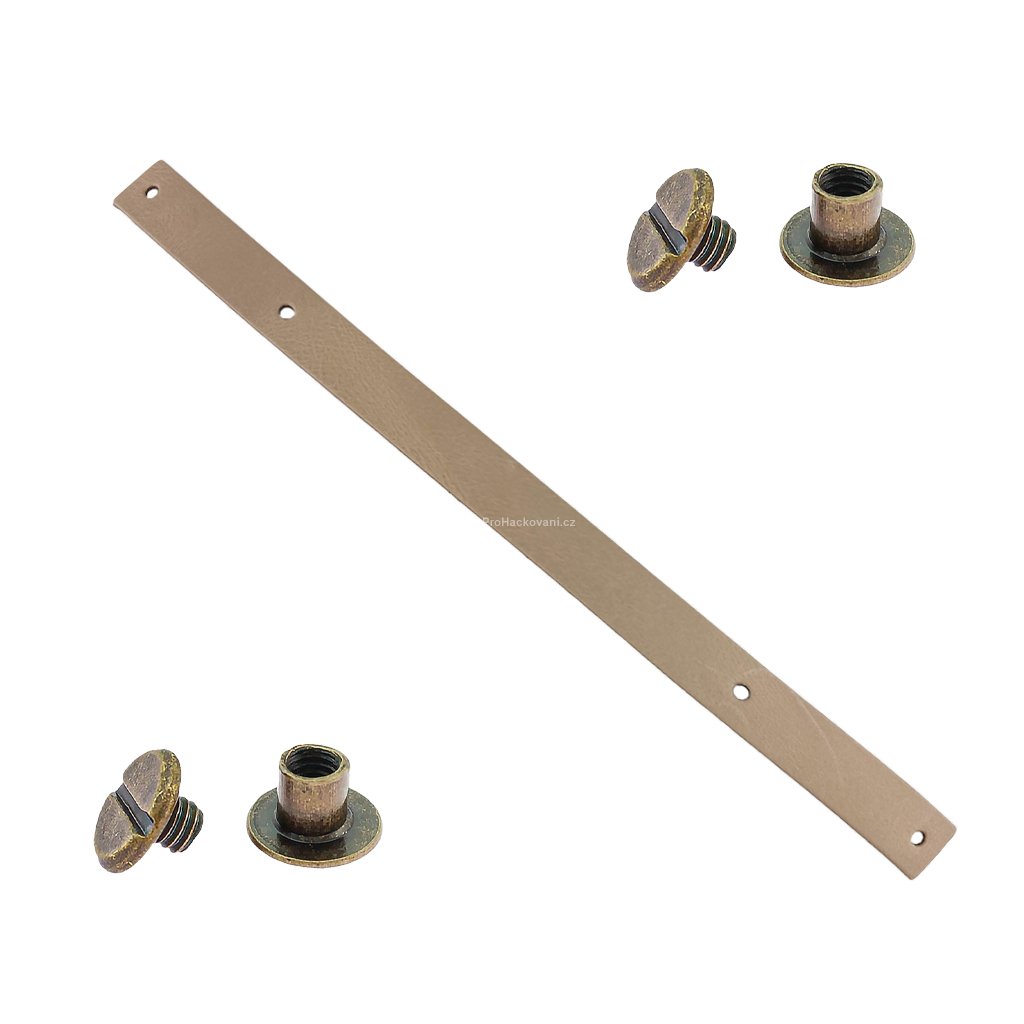 Sada kožený popruh 32 cm š. 2 cm bílá káva s nýtkem staromosaz