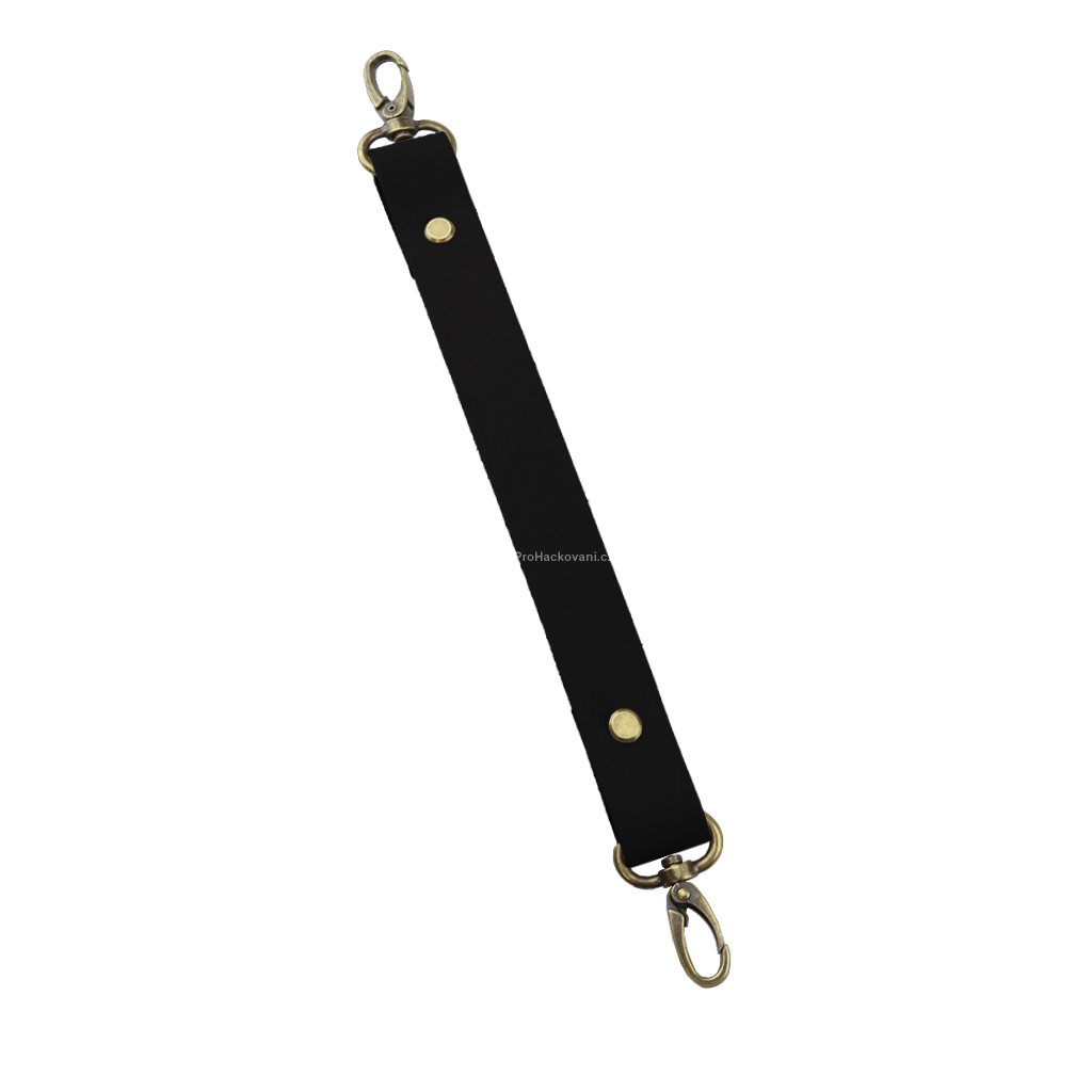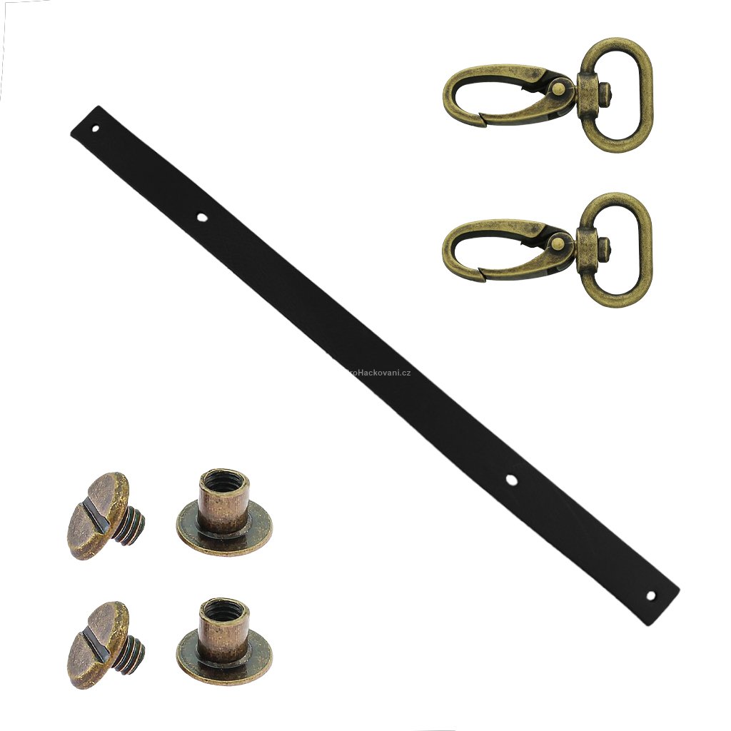 Sada kožený popruh 32 cm š. 2 cm černý s karabinou staromosaz
