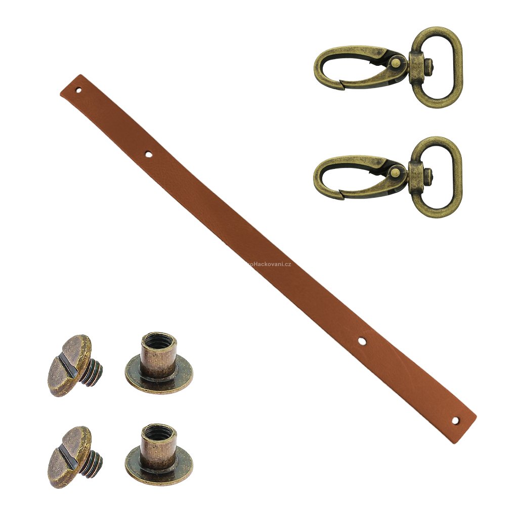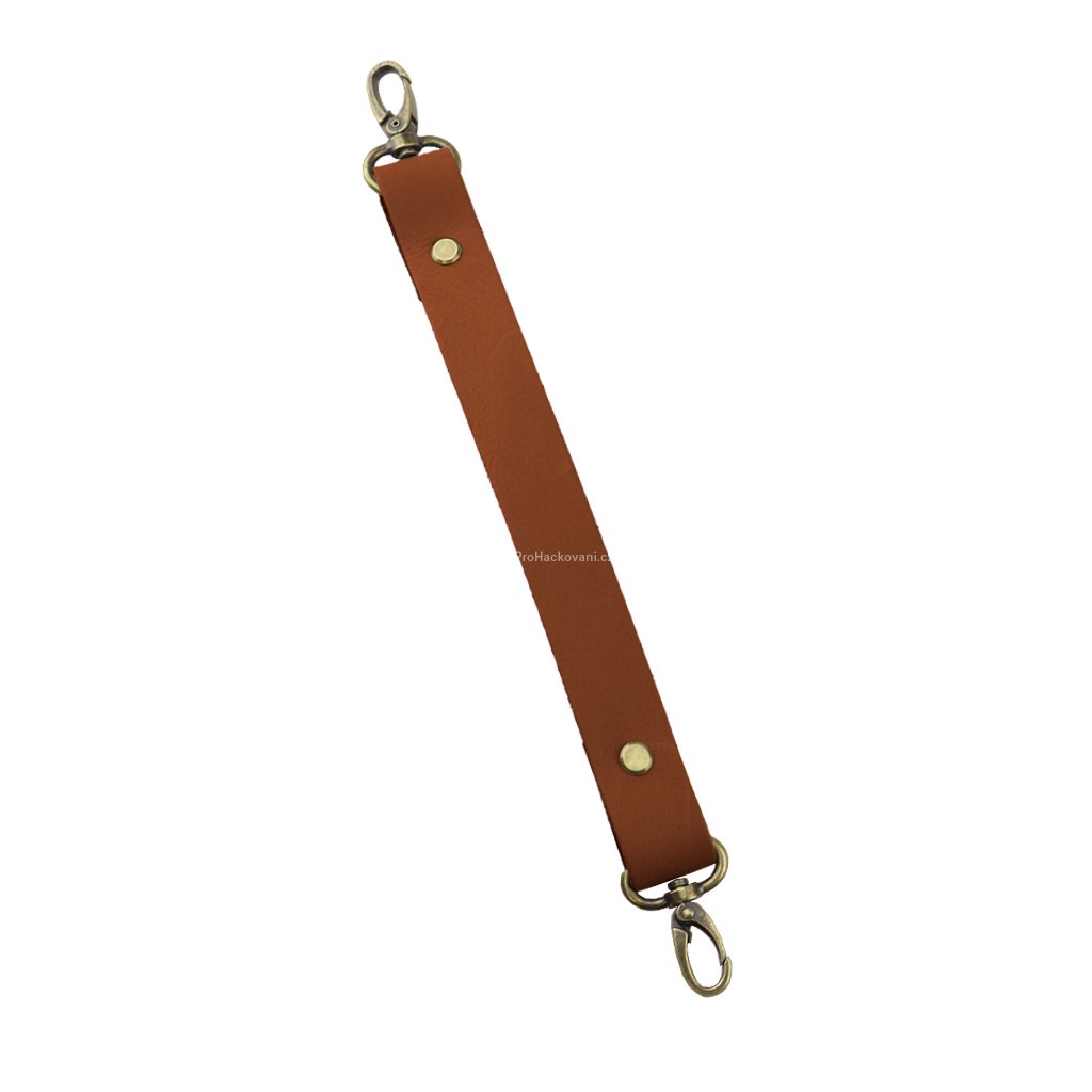 Sada kožený popruh 32 cm š. 2 cm hnědý s karabinou staromosaz