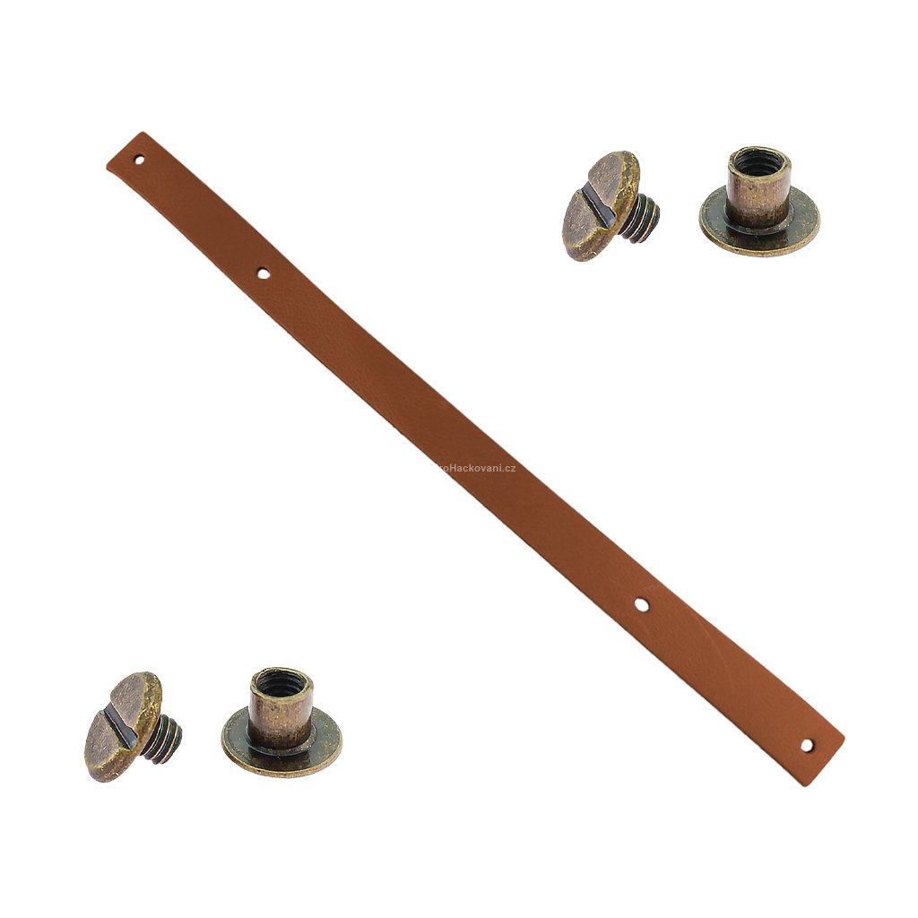 Sada kožený popruh 32 cm š. 2 cm hnědý s nýtkem staromosaz