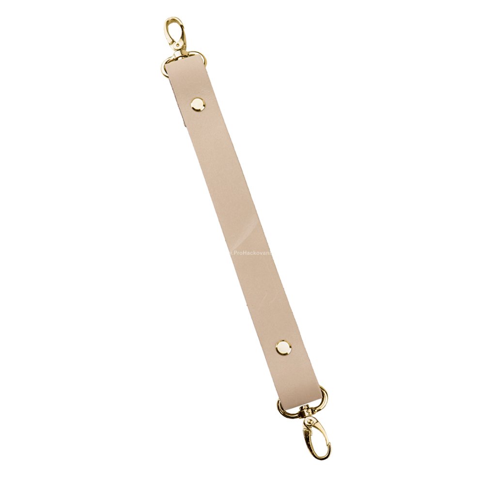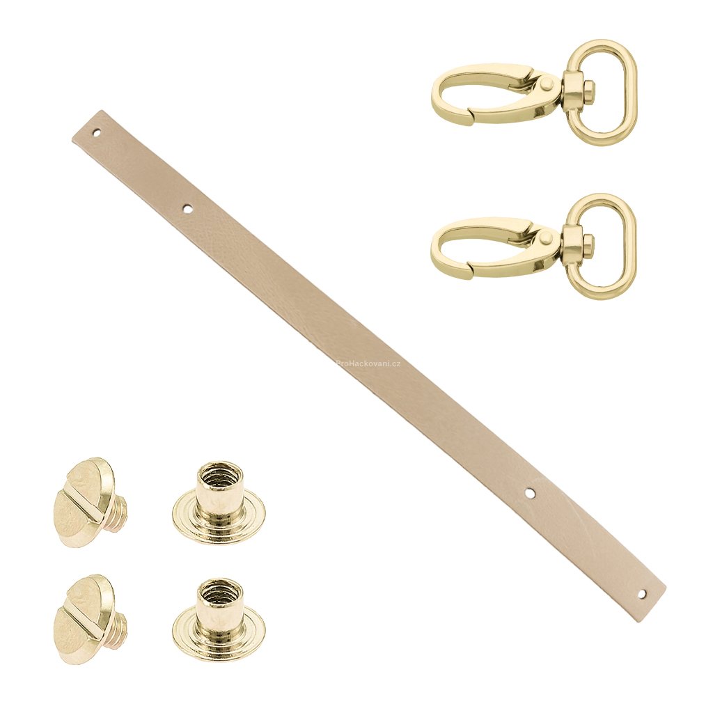 Sada kožený popruh 32 cm š. 2 cm krémový s karabinou zlatá