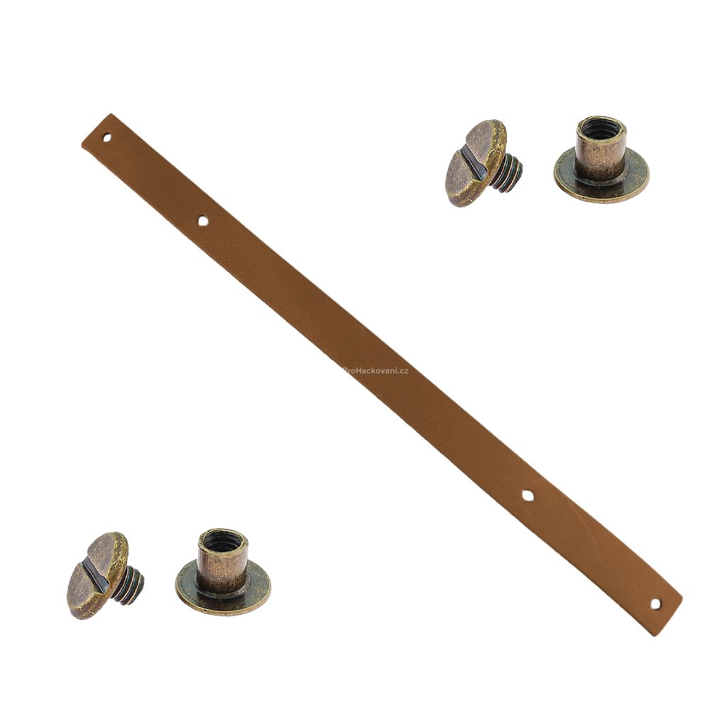 Sada kožený popruh 32 cm š. 2 cm tmavě hnědý s nýtkem staromosaz