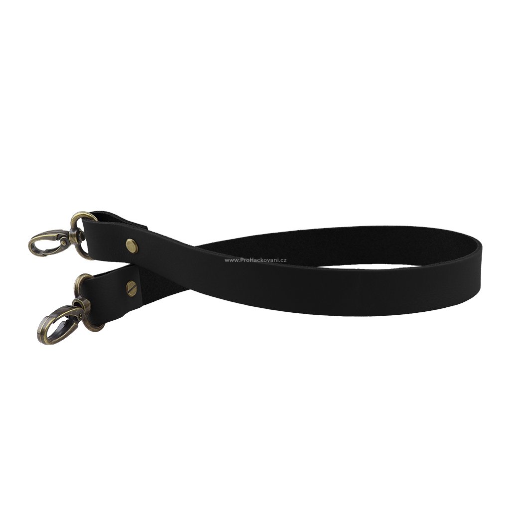 Sada kožený popruh 58 cm š.2,5 cm černý s karabinou staromosaz