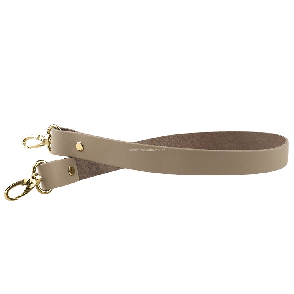 Sada kožený popruh 62 cm š. 2 cm bílá káva s karabinou zlatá