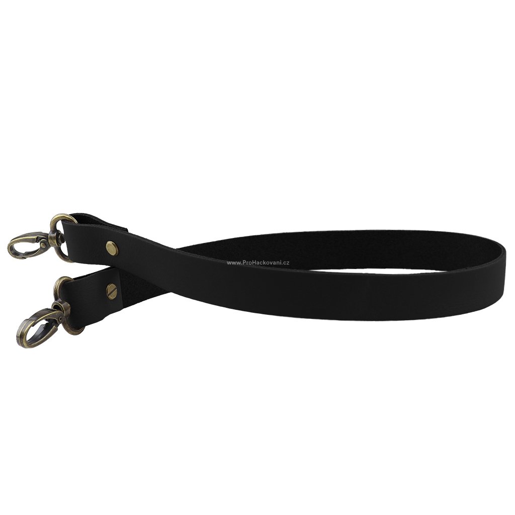 Sada kožený popruh 62 cm š. 2 cm černý s karabinou staromosaz