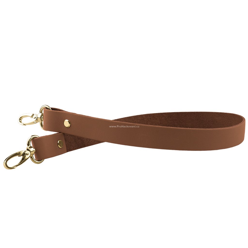 Sada kožený popruh 62 cm š. 2 cm hnědý s karabinou zlatá
