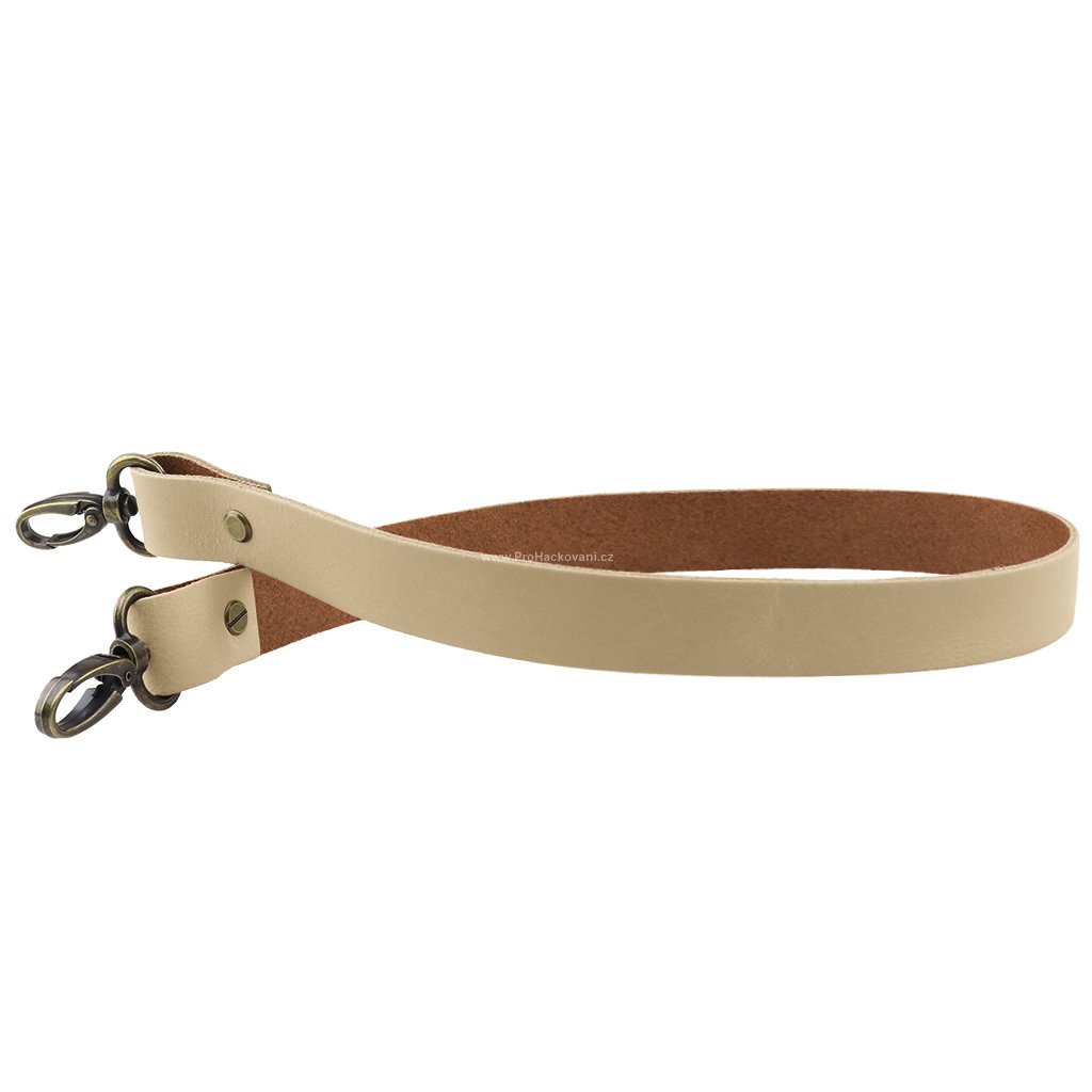 Sada kožený popruh 62 cm š.2 cm krémový s karabinou staromosaz