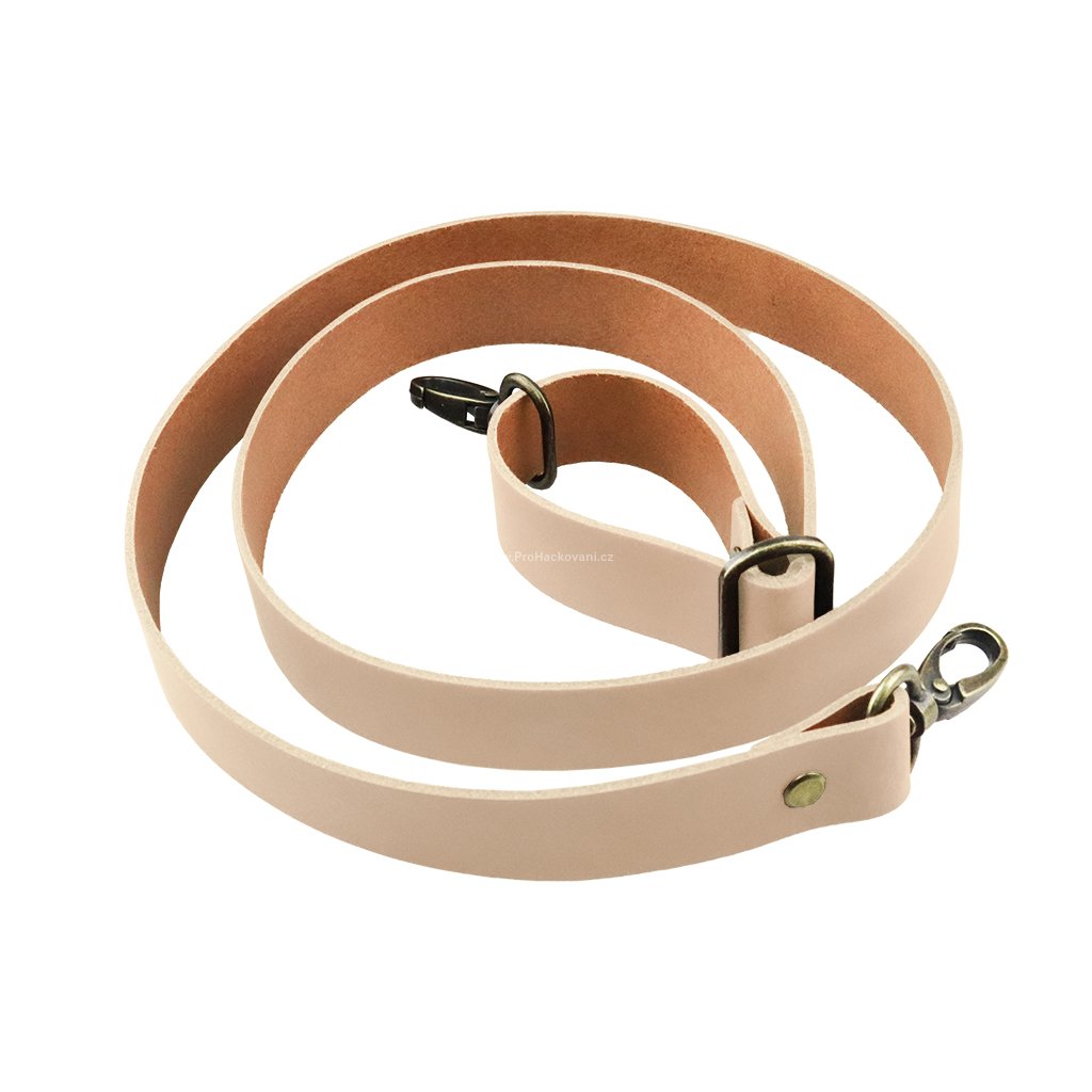 Sada kožený popruh posuvný 122 cm š. 2,5 cm krémový staromosaz