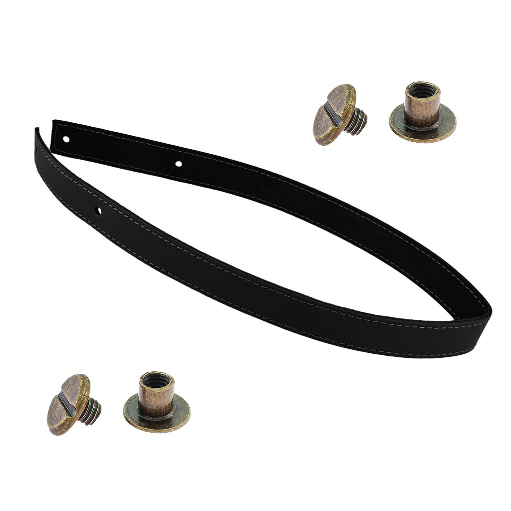 Sada kožený popruh prošívaný 58 cm š. 2,5 cm černý s nýtkem staromosaz