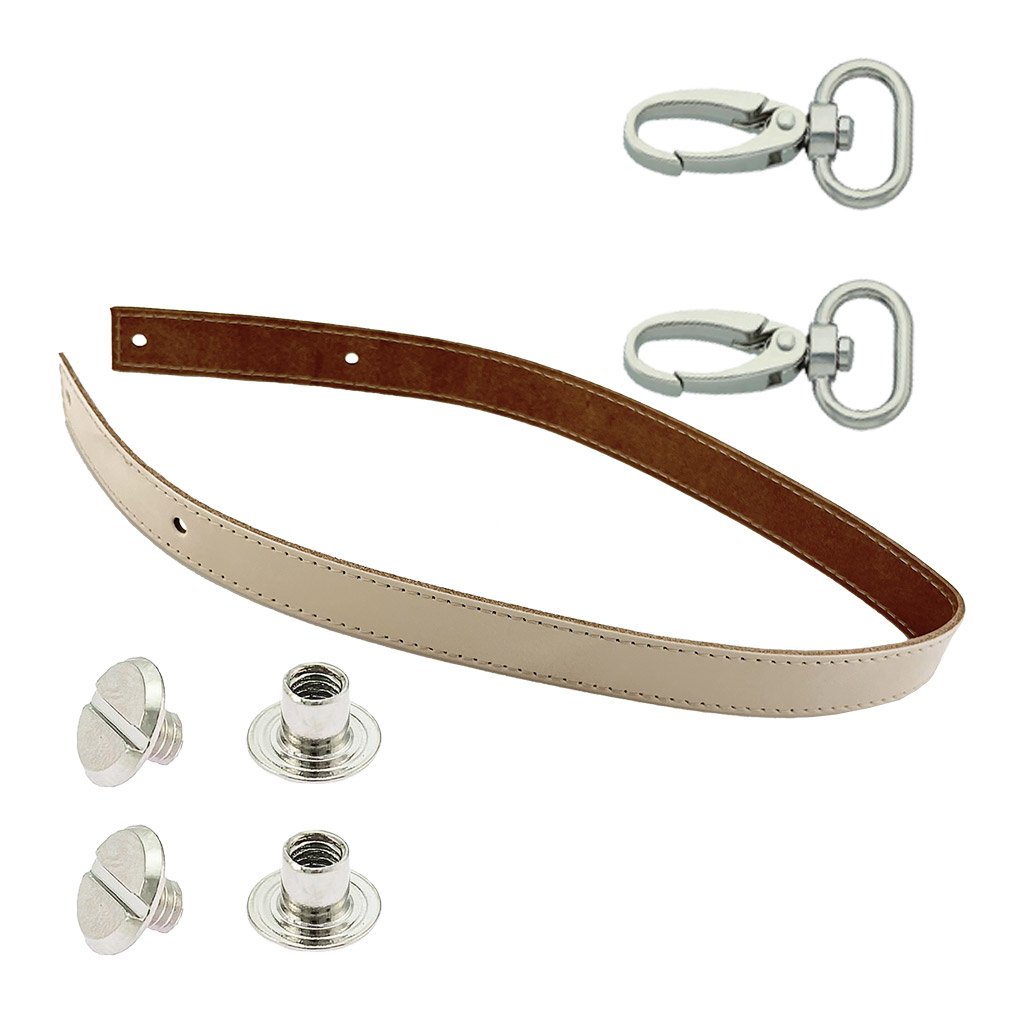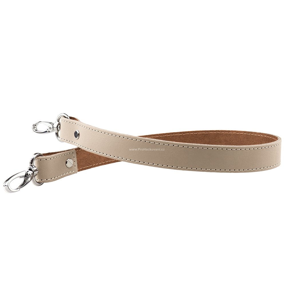 Sada kožený popruh prošívaný 58 cm š. 2,5 cm krémový s karabinou nikl