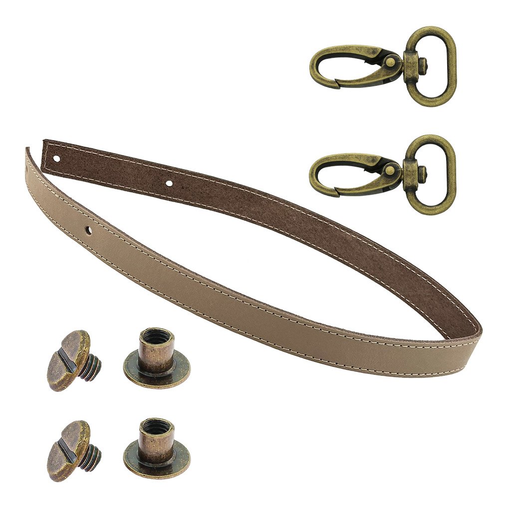 Sada kožený popruh prošívaný 58 cm š.2,5 cm bílá káva s karabinou staromosaz
