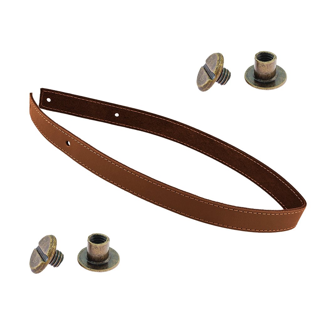 Sada kožený popruh prošívaný 58 cm š.2,5 cm hnědý s nýtkem staromosaz