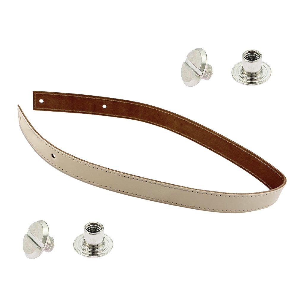 Sada kožený popruh prošívaný 58 cm š.2,5 cm krémový s nýtkem nikl