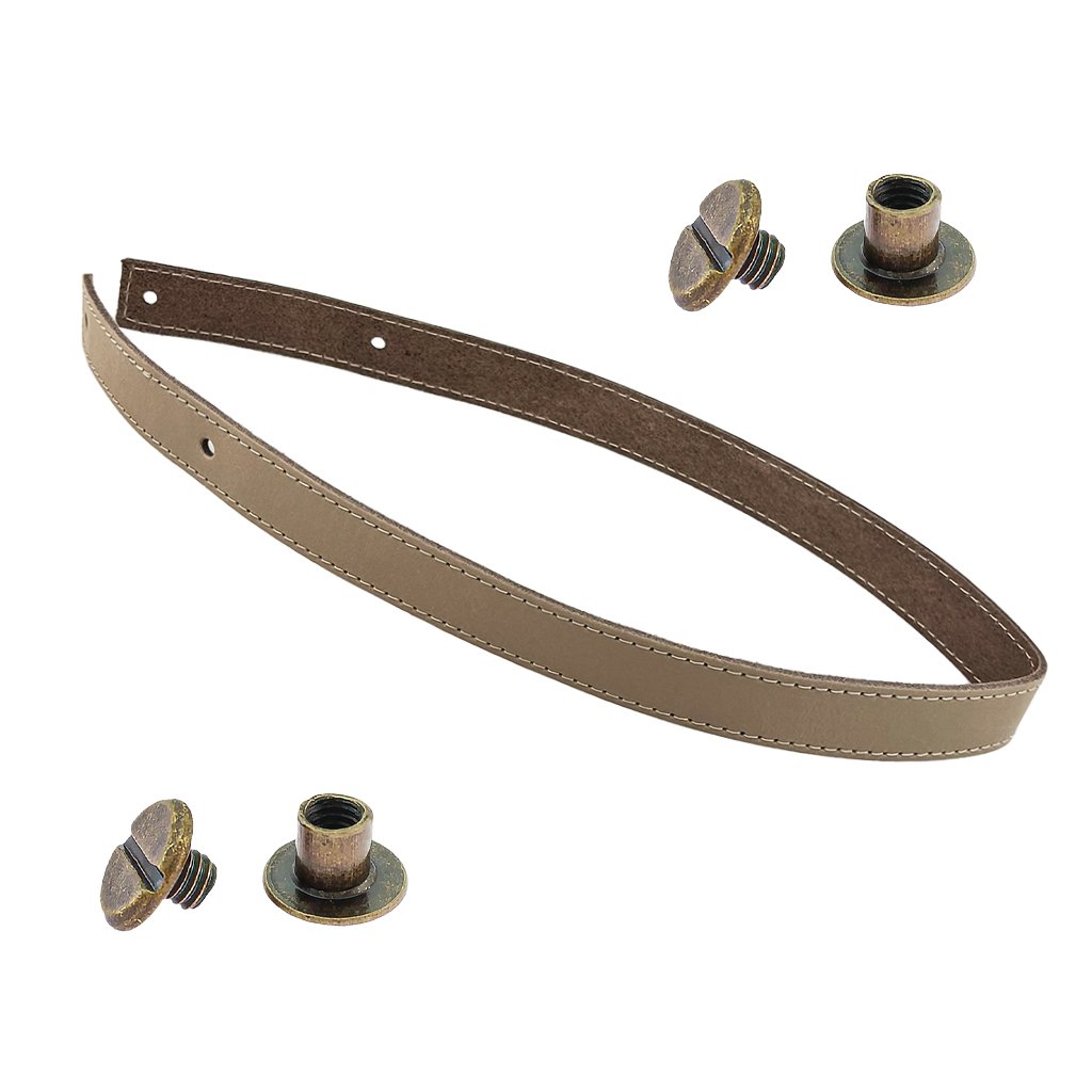 Sada kožený popruh prošívaný 62 cm š. 2 cm bílá káva s nýtkem staromosaz
