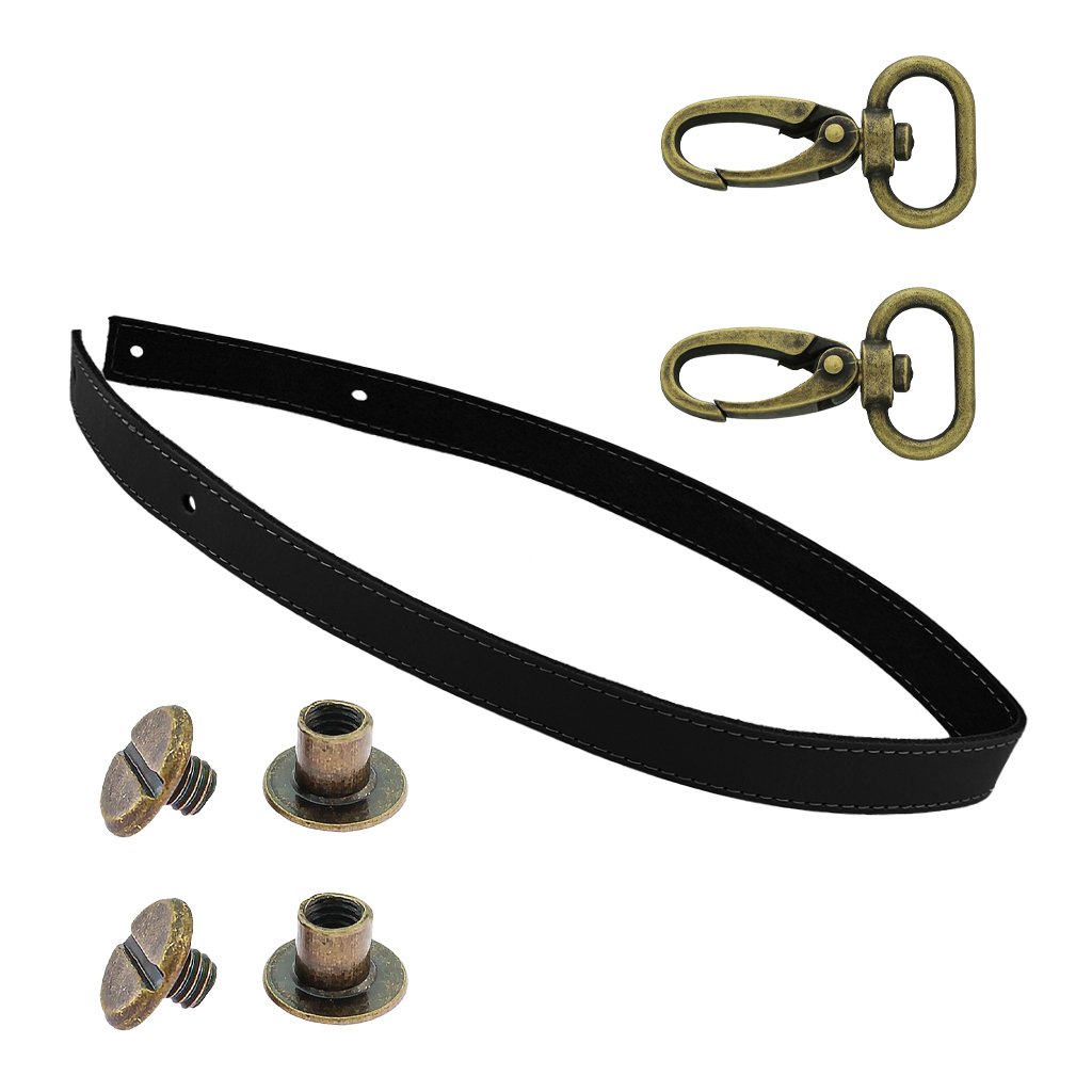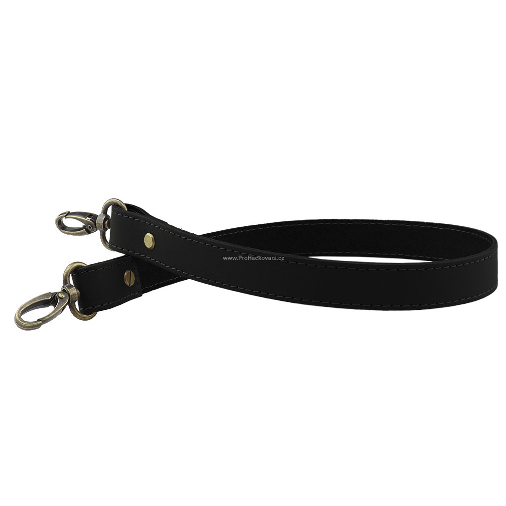 Sada kožený popruh prošívaný 62 cm š. 2 cm černý s karabinou staromosaz
