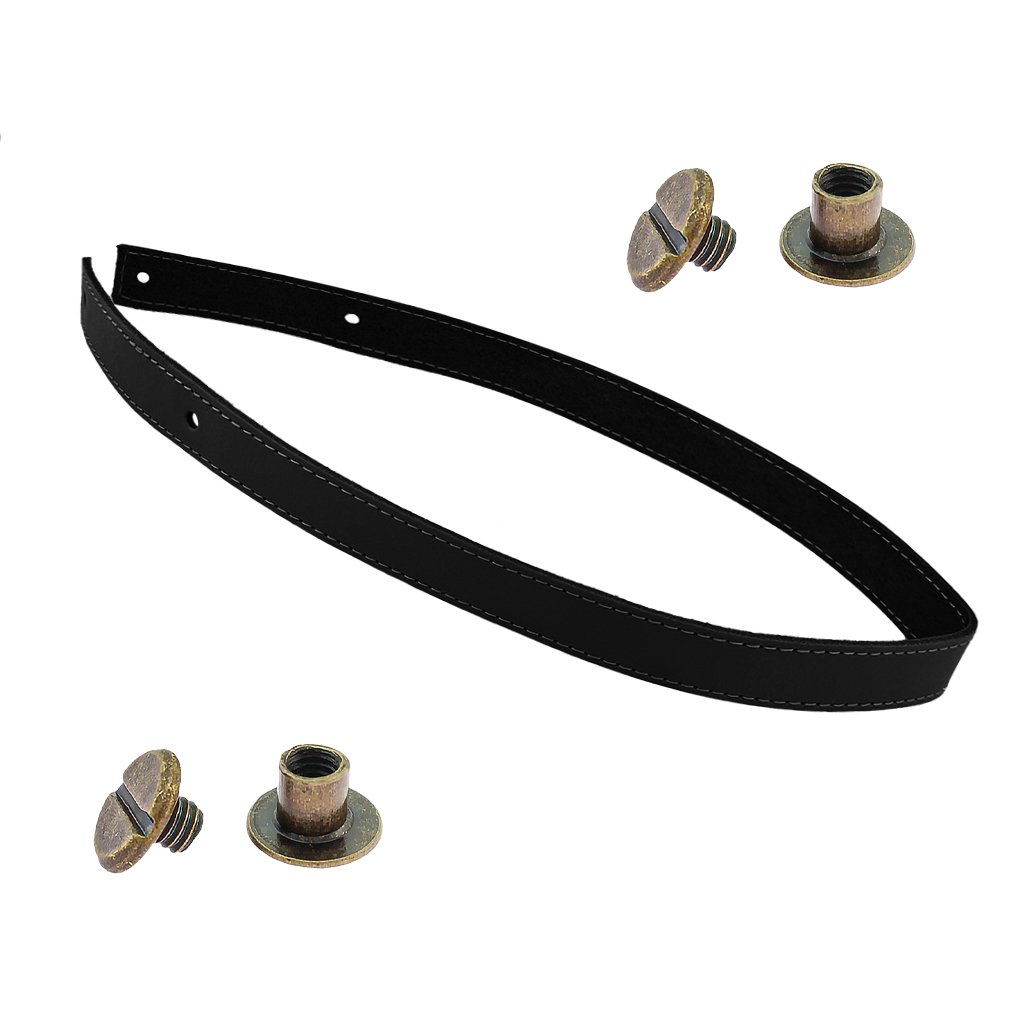 Sada kožený popruh prošívaný 62 cm š. 2 cm černý s nýtkem staromosaz