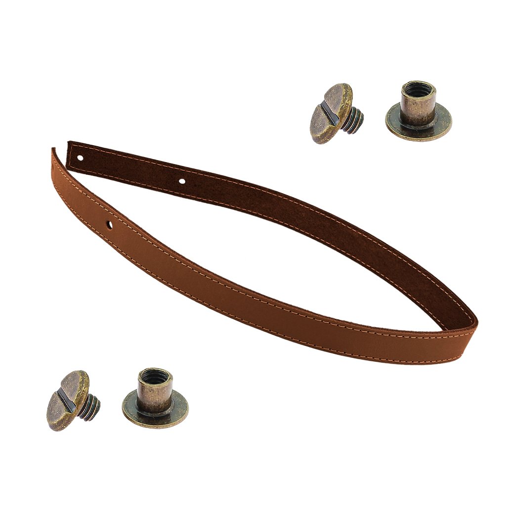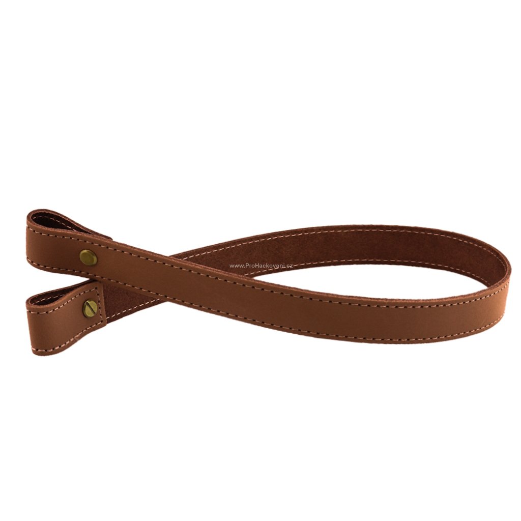 Sada kožený popruh prošívaný 62 cm š. 2 cm hnědý s nýtkem staromosaz