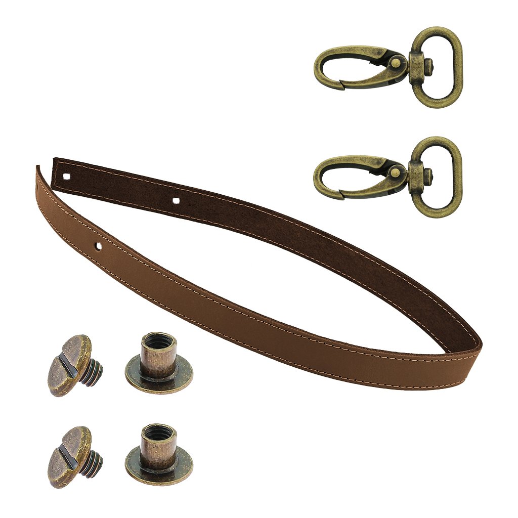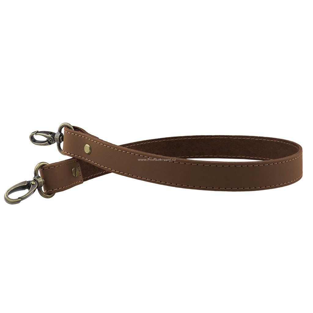 Sada kožený popruh prošívaný 62 cm š. 2 cm tmavě hnědý s karabinou staromosaz
